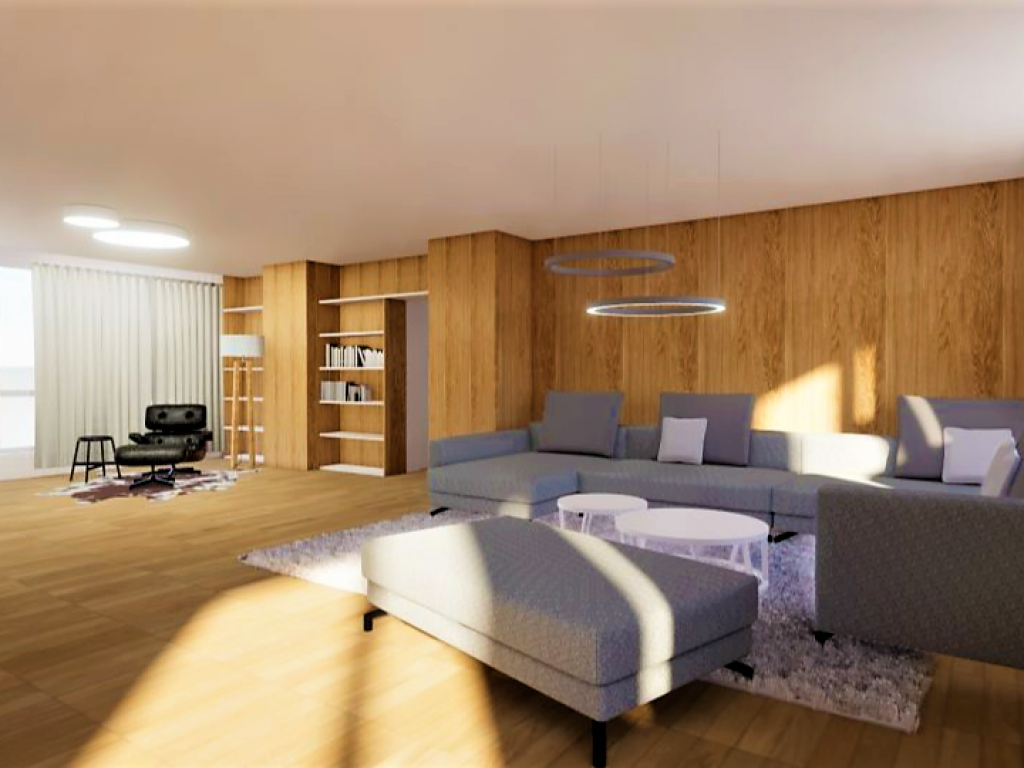 Denná časť - chodba, samostatná izba, átrium, veľká obývacia izba, kuchyňa + jedálenská časť.