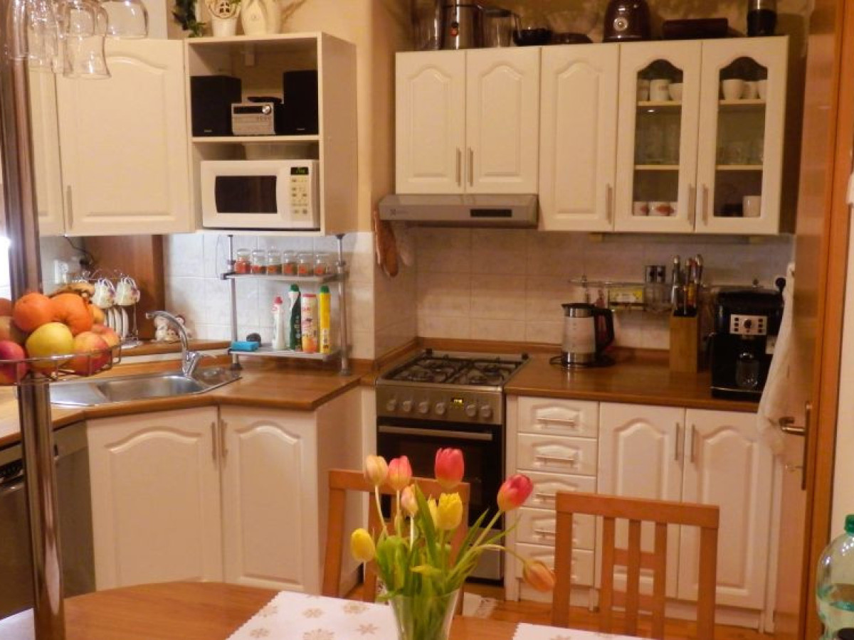 Byt sa predáva vyprataný so vstavanými skriňami a kuchynskou linkou. Podlahy laminátové a KD, nové stierky, rozvody el. energie medené, okná plastové vybavené sieťkami proti hmyzu. Info o cene v RK.