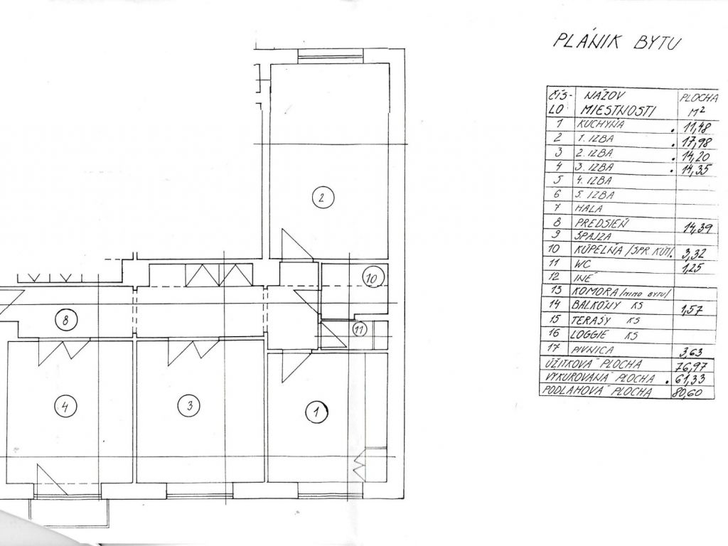 – byt má výmeru 76,97 m2 + BALKÓN o výmere 1,57 m2 + pivnica o výmere 3,63 m2