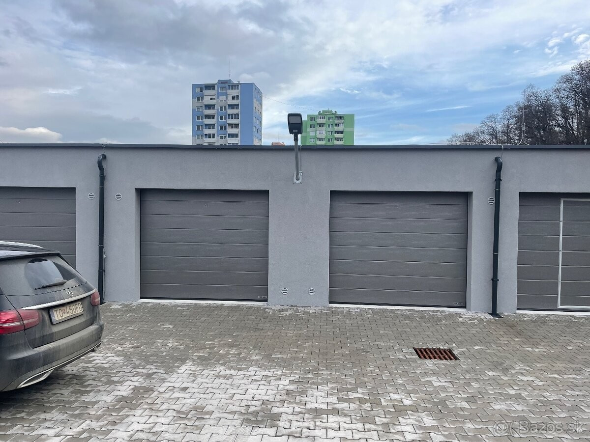 Ponúkam k dlhodobému prenájmu novostavby garáží (dve garáže, skolaudované) v lokalite ul. Horská, Partizánske, časť Šípok. Každá garáž má elektronickú bránu aj mechanické ovládanie brány (v prípade výpadku el. energie), ďalej 2 x zásuvku 220v a prípravu na zásuvku k elektromobilu. Garáže (rozmery plochy 6 m x 3,5 m) sú 3 a 4 v poradí vpravo pri vjazde z ulice Horská. Steny garáže sú z pórobetónu a omietnuté, strop je betónový monolit. Garáž je vhodná aj pre garážovanie motorky, pre vyznavačov bicyklovej turistiky (v tesnej blízkosti cyklotrasy a lesa) alebo ako sklad (je odvetrávaná). Okrem jedného miesta na parkovanie v garáži je ďalšie odstavné miesto pred garážou (na fotke). Ako benefit má garáž nad vstupom svetlomet verejného osvetlenia a je monitorovaná funkčným kamerovým systémom. Pred garážou je kanál vhodný na zbežné umývanie vozidla. Garáže, príjazdy k nim a okolie podliehajú zazmluvnenej správe a údržbe. Cena nájmu je 5,7 eur/m2 plochy garáže.